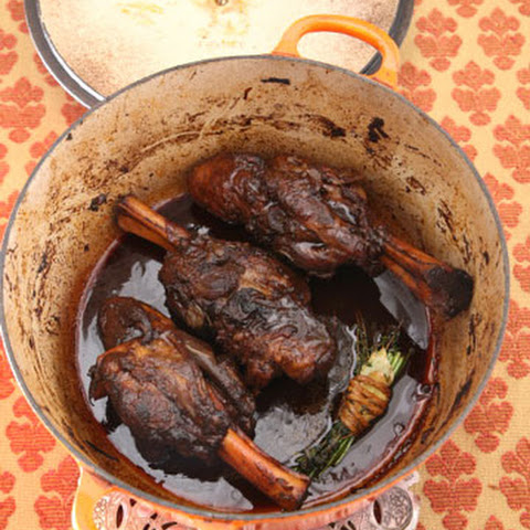 Recipes from the Recipe Swap Tent Series: 4 tbsp red wine vinegar 300ml red wine 300ml lamb stock 2 tbsp redcurrant jelly Slow roast the lamb shanks for 4-5 hours Transfer the lamb to a serving dish. Skim any fats from the juices in the ... View Full Source